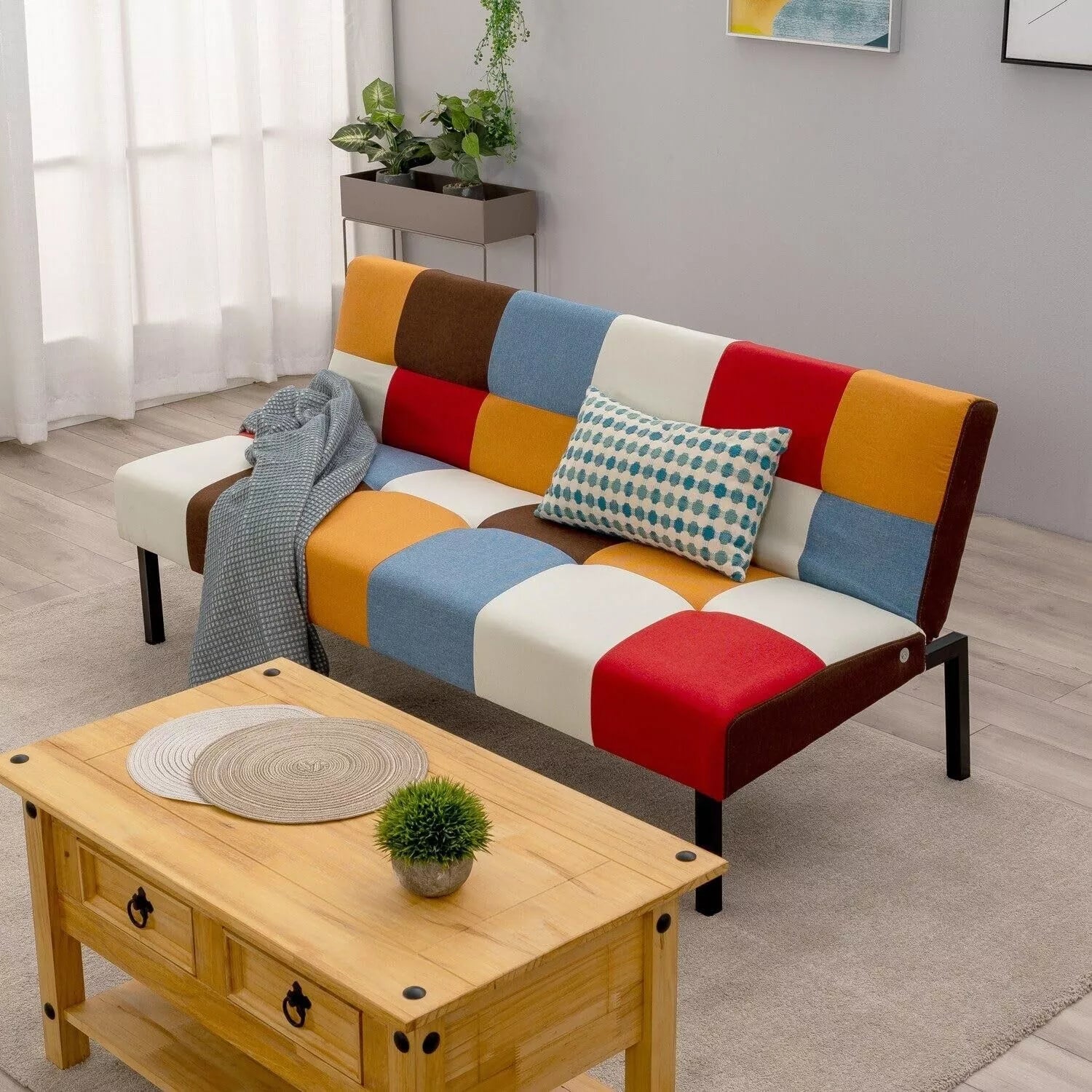 Sofa + Bed Modern Sleeper Sofa Settee Rainbow Patchwork for Living Room