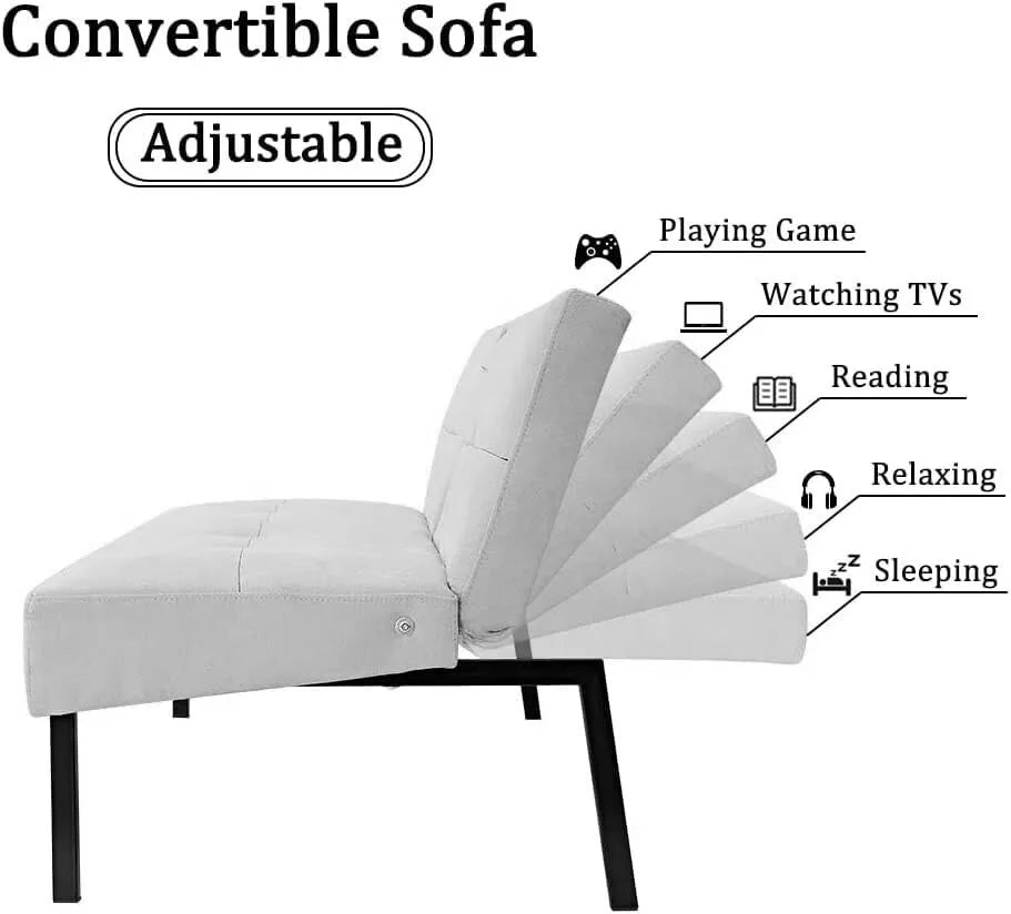 Product Dimensions : 72 D x 165 W x 52 H centimetresMULTI-FUNCTIONAL: The sofa bed can recline to 5 different position to meet for your varied requirements. If your family member and friends stay over, you can recline it to used as a bed.PREMIUM FABRIC: Upholstered in a durable polyester fabric. The sofa frame construction is made from solid hardwood and with durable powder-coated legs. Stunning design and so contemporary for living room, bedroom and home office.STURDY INSTRUCTURE: Made from sold wood frame and powder coated metal legs to ensure the strengthen construction and durability. Maximum weight capacity up to 500 pounds. DIMENSIONS: As a Sofa Size: 66 W x 28.5 D x 28.5 H. As a Sofa bed: Size: 66 W x 36.5 D x 15 H.EASY TO ASSEMBLE: This single sofa bed is flat pack but easy to assemble, no extra tools needed, just follow the steps of manual instruction.